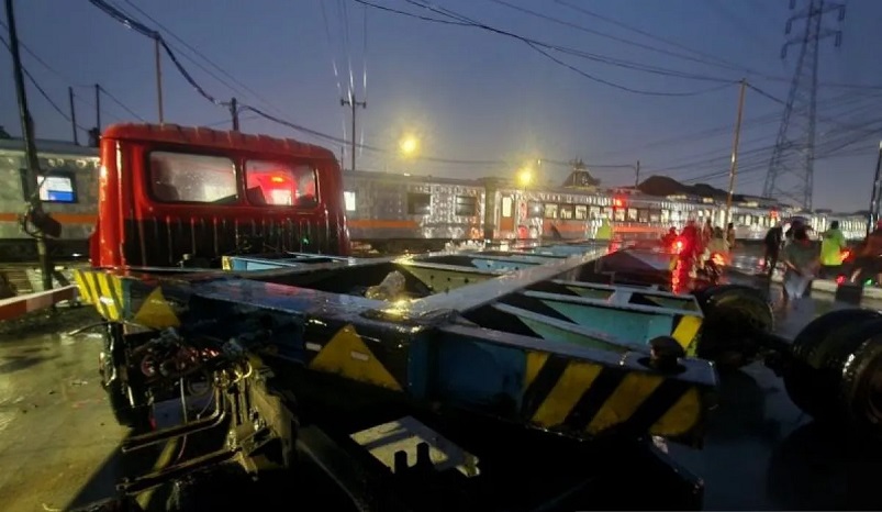 Kereta sempat terseret beberapa meter setelah tabrakan, sementara bagian depan truk ringsek tak berbentuk. Beruntung, tidak ada korban jiwa, dan masinis serta penumpang dilaporkan selamat meski mengalami syok.